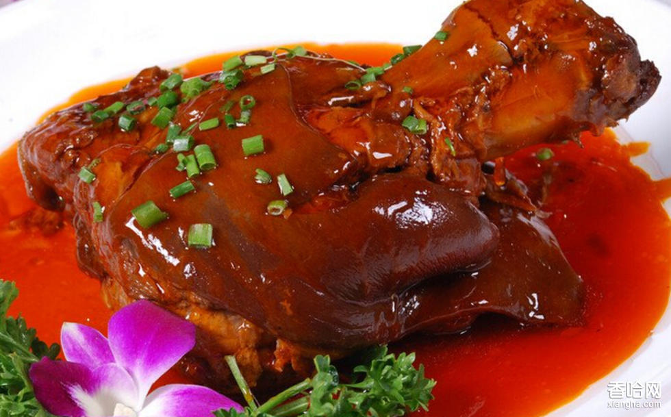 它以豬前腿精心鹵制而成。做法是首選骨頭小、肥肉少、瘦肉多上好的前肘1.3-1.5斤,用蔥姜蒜和紹酒去腥增香,生抽和老抽給肘子上色,再加少許冰糖去油提鮮,最后用小火慢燉、大火收汁等,經(jīng)過復(fù)雜工序做成的侯集肘子肉質(zhì)肥而不膩,口感筋道,食之齒頰生香,風(fēng)味獨(dú)特,具有生肌益膚、美容養(yǎng)顏之功效。