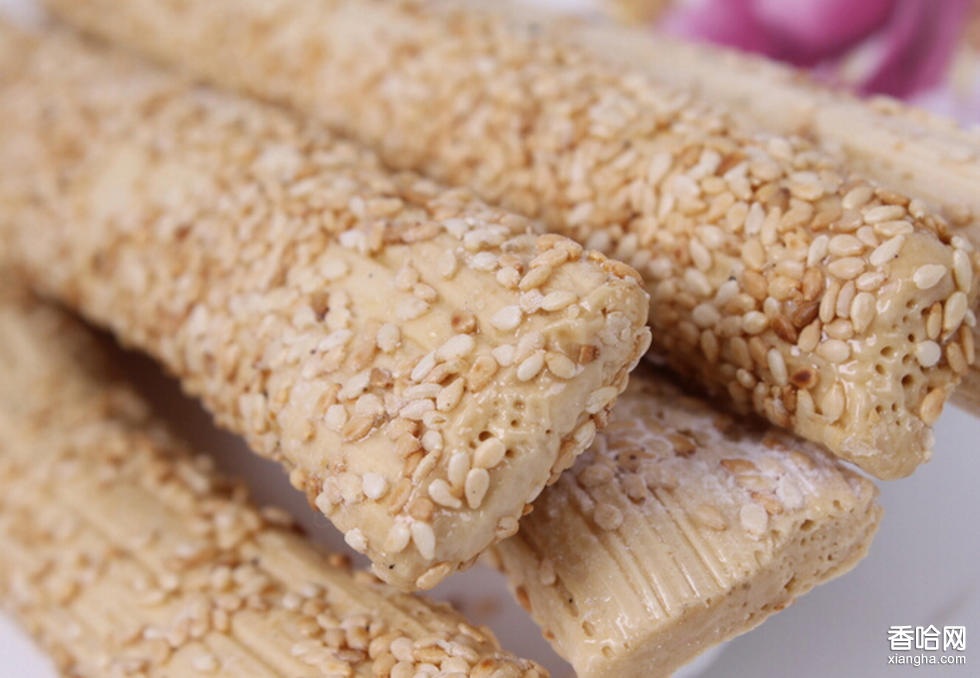 芝麻糖具有悠久的歷史和獨(dú)特的風(fēng)味漢族傳統(tǒng)名點(diǎn),有條形,平板形,色澤乳白,體亮晶明,香甜酥脆,味道純正可口,營養(yǎng)豐富,并有和胃順氣、止咳和醫(yī)治便秘等作用。已有200余年的歷史。