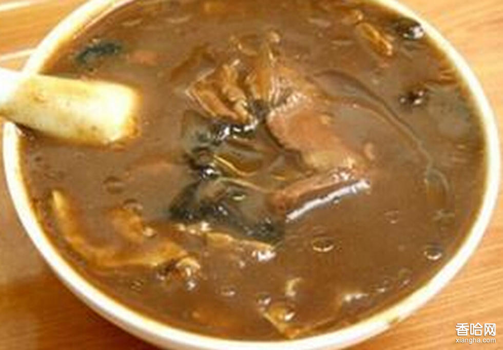 做法:1、把鹽參入面粉中,加少許水?dāng)嚾喑蓤F(tuán),然后不斷加水,直到揉出粘稠而有彈性的面筋和面筋水。2、鍋置火上加水燒開,放入面筋。待面筋熟后將面筋水倒入鍋中,燒至湯汁變稠時,放入香菜、菠菜、粉條、海帶絲、蔥、姜末、精鹽、胡椒粉,旺火燒沸即成。