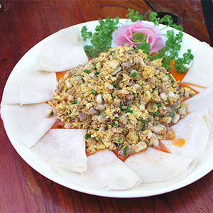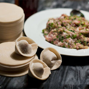 3、花椒水去膻味是最重要的,可以在剁肉的時候分次添加,也可在攪拌肉餡時分次添加;