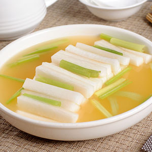 白蘿卜排骨湯,味道鮮美營養(yǎng)豐富,適合各年齡段人群。排骨白蘿卜湯色不厚不重,不油不膩,適合當(dāng)做家常美味老火湯,也適合做宴請的菜品。民間有“蘿卜青菜保平安”的說法,蘿卜屬溫性,當(dāng)然,這道菜也非常適合女士食用,蘿卜中含有較多的纖維和水分,有利于保健美容。 做法上,食料搭配簡單。此外,民間還有“冬吃蘿卜夏吃姜”的俗語,因此,在冬天食用此菜是非常滋補(bǔ)的。在我國民間有“小人參”之美稱,“冬吃蘿卜夏吃姜,不要醫(yī)生開藥方”,“蘿卜一味,氣煞太醫(yī)”之說,還有一個(gè)俗語表現(xiàn)了蘿卜的益處:“吃著蘿卜喝著茶,氣得大夫滿街爬”。