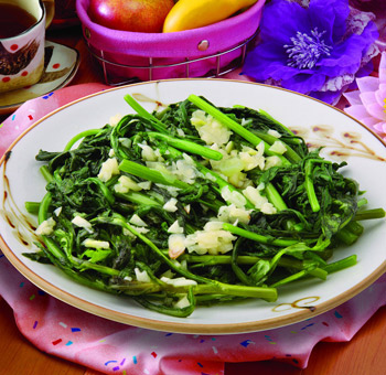 點評:蒜茸與茼蒿的香味混雜在一起,溢滿周圍,讓人聞之便食欲大增。細(xì)細(xì)品嘗,茼蒿的柔嫩口感能令人回味無窮。