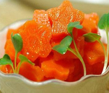 6、為避免胡蘿卜素被酸性物質(zhì)破壞,故烹飪時(shí)不宜放醋。若過(guò)量服食胡蘿卜,往往引起皮膚黃染,不過(guò)不必緊張,停食兩月,則會(huì)自行消退。