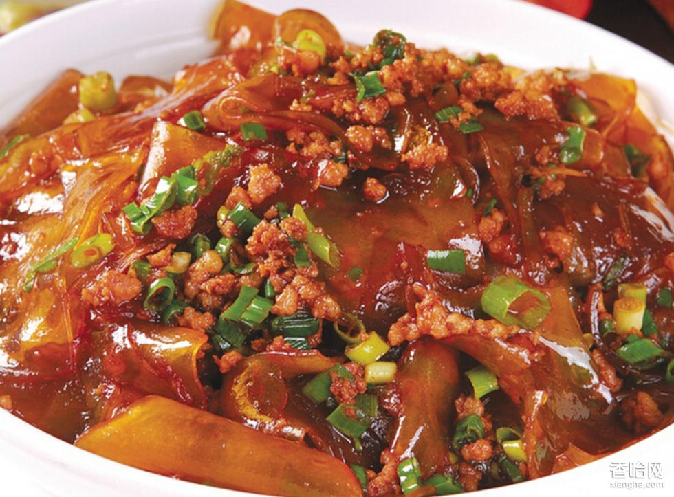 制作方法:1. 粉皮洗凈煮至九成熟2. 過涼后切成細(xì)條備用3. 蔥、姜、蒜、干辣椒、香菜切好4. 鍋內(nèi)熱油爆香八角、姜蒜5. 倒入蔥花、干辣椒6. 再加適量甜面醬炒勻7. 放入切好的粉條8. 炒勻后加鹽、雞精調(diào)味9. 撒入香菜段調(diào)勻10. 炒勻裝盤即可食用。