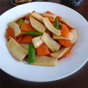 杏鮑菇肉質(zhì)肥嫩適合炒、燒、燴、燉、做湯及火鍋用料,亦適宜西餐;即使做涼拌菜,口感都非常好,加工后口感脆、韌,呈白至奶黃色,外觀好。而搭配胡蘿卜清炒帶出來的口感卻也是使人驚喜的。