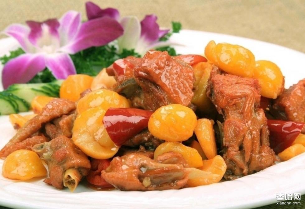 天師板栗燒土雞,鷹潭市的傳統(tǒng)名菜,江西鷹潭龍虎山出產(chǎn)的天師板栗,個大香甜,淀粉豐富,是歷代天師特別喜愛的果品和滋補品,素有“人間仙果”之稱。而這缽天師板栗與當?shù)剞r(nóng)家喂養(yǎng)的土雞相配,在文火中慢慢地燒出來的“天師板栗燒土雞”,油光發(fā)亮,清香思溢,是這里很有名的美味佳肴,能吃這道菜,可謂“國 賓”的待遇。