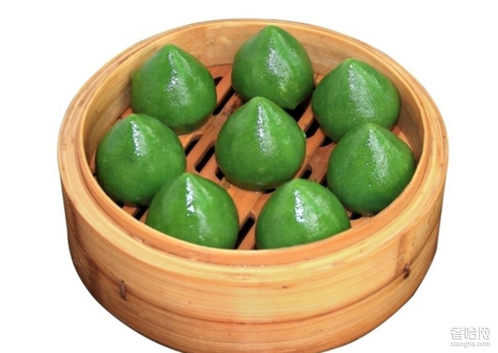 艾米果由艾草葉和米粉按比例搟和成均勻的粉團,放入蒸籠用猛火蒸,蒸到米果油光發(fā)亮,摸不粘手即熟透了,這時的艾米果看起來綠綠的,油油的,亮亮的,聞起來香氣沁脾,令人垂涎欲滴,吃起來更是油而不膩,粘而不湖,脆而不松,口感甚佳,真是色香味形俱全。