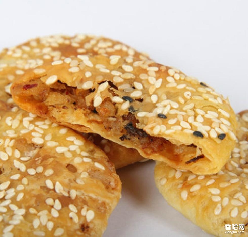 此餅園形,選料考究,餅芯以純豬油、白糖、花椒、白芝麻、五香粉、香蔥、食鹽等為原料,用精面粉為包皮,前后經過揉面、包酥、揉平、燒烤等32道工藝工序制成。該產具有薄、酥、香、甜、脆五大特色,肯薄而不虛、酥而不碎、香而不嫩、甜而不膩。