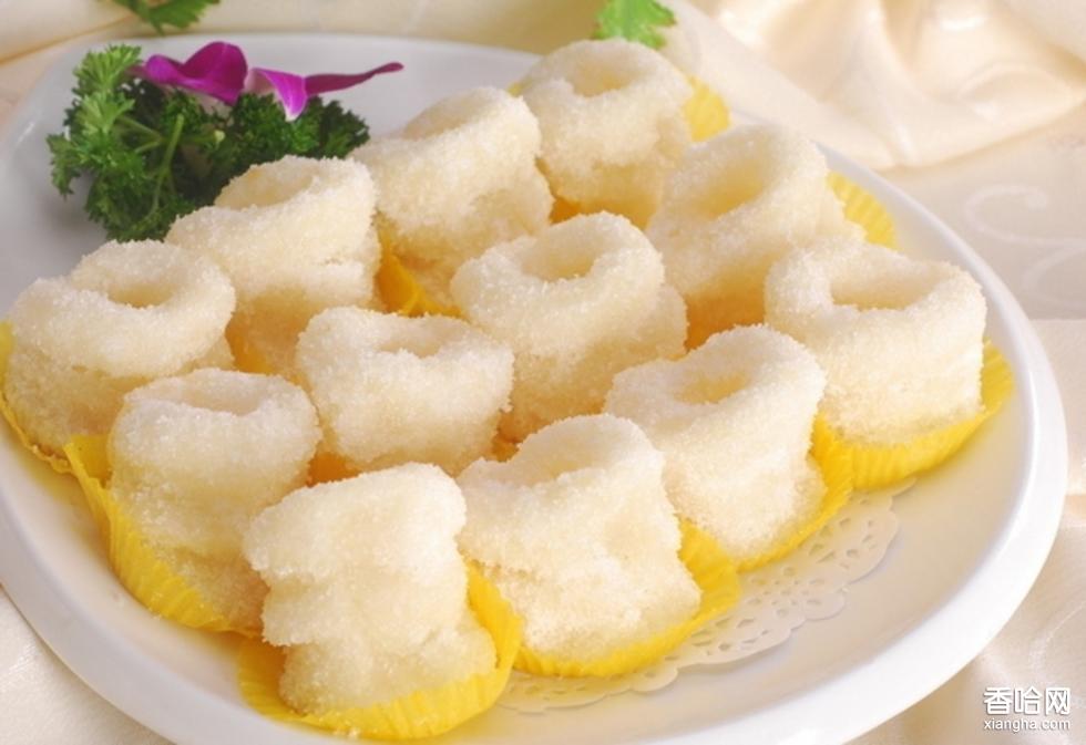 白糖糕,是江西一道歷史悠久的點(diǎn)心,起源于明清時(shí)期的南昌,到民國(guó)時(shí)代,這種白糖糕已是南昌街頭巷尾各大茶鋪常備的佐茶食品,被譽(yù)為“江西五大傳統(tǒng)名點(diǎn)”,其特點(diǎn)香韌、柔軟、潔白,其表面沾有江西獨(dú)特的凍米粉和糖份混合物,風(fēng)味獨(dú)特,是深受江西地區(qū)民眾喜愛的傳統(tǒng)糕點(diǎn)。