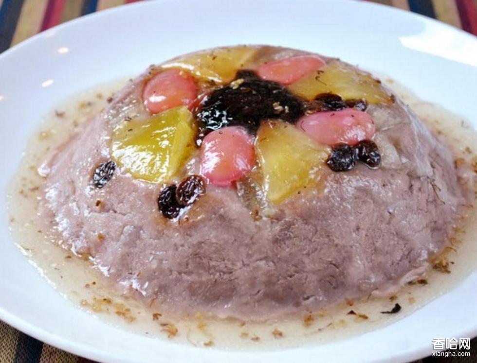 芋泥也叫芋茸,是福建省閩菜中的漢族傳統(tǒng)甜食之一,以芋頭煮熟搗爛加紅棗、櫻桃、瓜子仁、冬瓜糖、白糖、桂花和熟豬油等輔料制成。福建東部沿海地區(qū)有做芋泥的習(xí)俗。芋泥常作為福州宴席上的壓軸甜點(diǎn)推出。其中又尤以福鼎的八寶芋泥最為地道。
