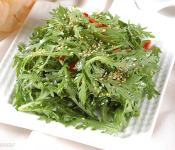 1、取洗凈、切段的的茼蒿,放入沸水鍋內(nèi)焯燙,撈出過(guò)涼,加上精鹽、米醋和香油等調(diào)勻食用.有健脾胃、助消化的功效.對(duì)于食欲不振者有良好的輔助治療作用。