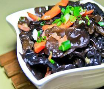 胡蘿卜炒木耳的配料:蔥段50克,花生油、姜絲、料酒、精鹽、味精各適量。