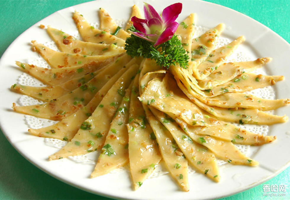 清油盤絲餅之所以叫“清油”,是相對(duì)葷油而言,用花生油來(lái)煎烙的。“盤絲”才是此餅的造型特色。它是以抻面的基礎(chǔ)上發(fā)展起來(lái)的一種精細(xì)面食品。制作時(shí)把面抻至極細(xì),細(xì)如銀絲,達(dá)千余根,再盤成圓餅形,放油中半煎半烙使之變熟。然后,提起中間把餅拉散,散放盤中,撒上青紅絲、白糖即成。盤絲餅外焦里嫩,金絲均勻,味甜爽口,是宴席上的佳品點(diǎn)心。特點(diǎn):外焦里嫩、金絲均勻,味甜爽口,條細(xì)均勻,絲不并、不斷、不亂。