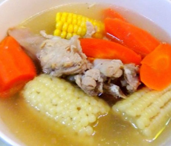材料:排骨半斤,玉米2根,胡蘿卜1根