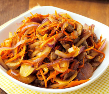 主料:洋蔥200g、胡蘿卜120g、豬肉80g
