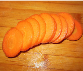 2、再把胡蘿卜切面翻上面。