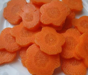 如果是做配菜,為了在蔬菜的烹調(diào)中的確能起到很好的裝飾作用,可以切菱形。根據(jù)胡蘿卜長(zhǎng)短,盡量切成一段一段的等份平行四邊形,然后再切片。切片的厚度一般為一根牙簽的粗細(xì)。