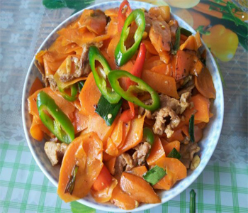 炒胡蘿卜片是一道平常菜肴,普通人家的餐桌上,這道菜必不可少。紅蘿卜因其肉質(zhì)根含有豐富的類胡蘿卜素、可溶性糖、淀粉、纖維素、多種維生素以及多種礦質(zhì)元素,素有“小人參”之稱。經(jīng)常食用對(duì)身體十分有益處。
