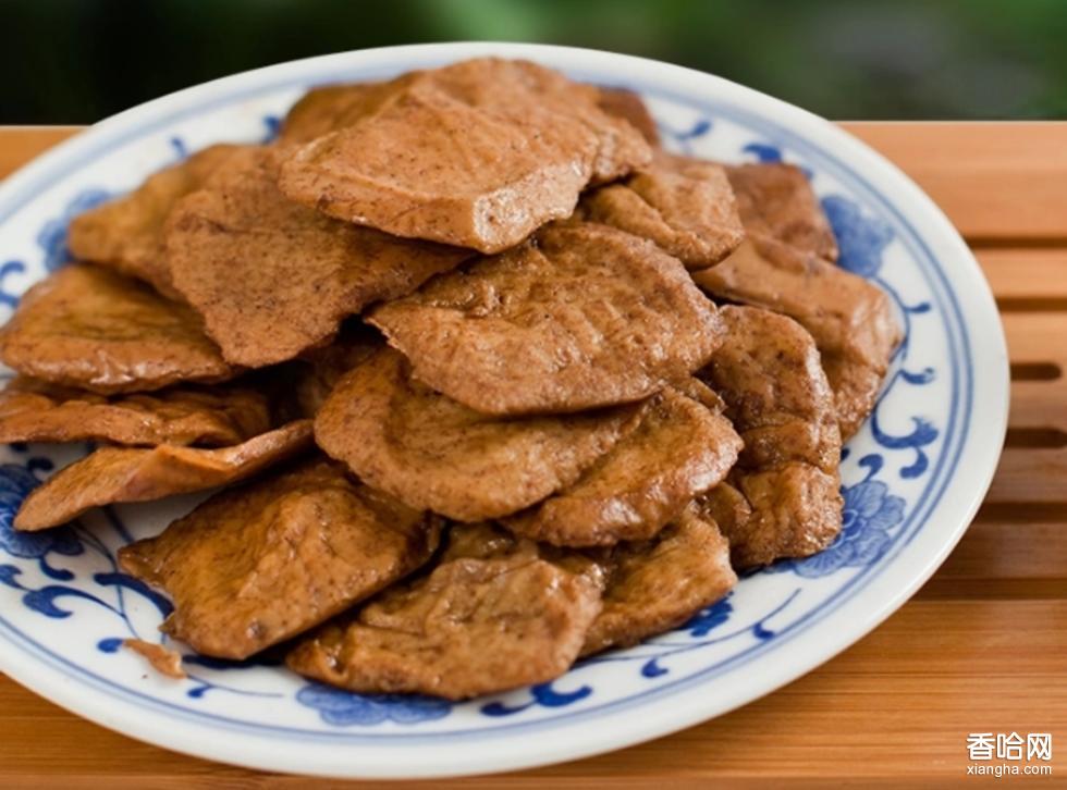 它的做法是講究點(diǎn)鹵、篩漿網(wǎng)布眼細(xì),每塊干坯用紗布包裹,上板壓緊。然后將白干子放進(jìn)冬菇、八角、甘草、冰糖和原汁醬油配制的汁水里泡八個(gè)小時(shí),再放進(jìn)鍋里煮,待撈上來后再拌上麻油。因此形方體薄、有彈性、韌性(一塊干子可以卷成一個(gè)小筒)。