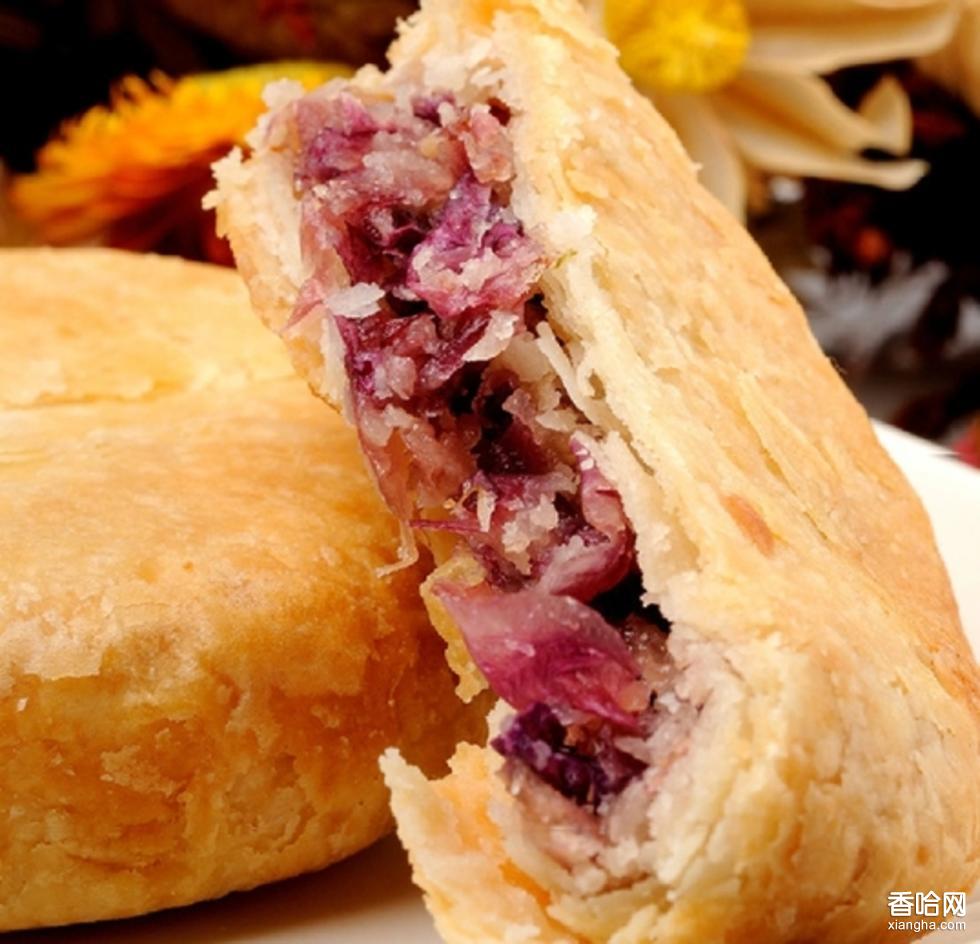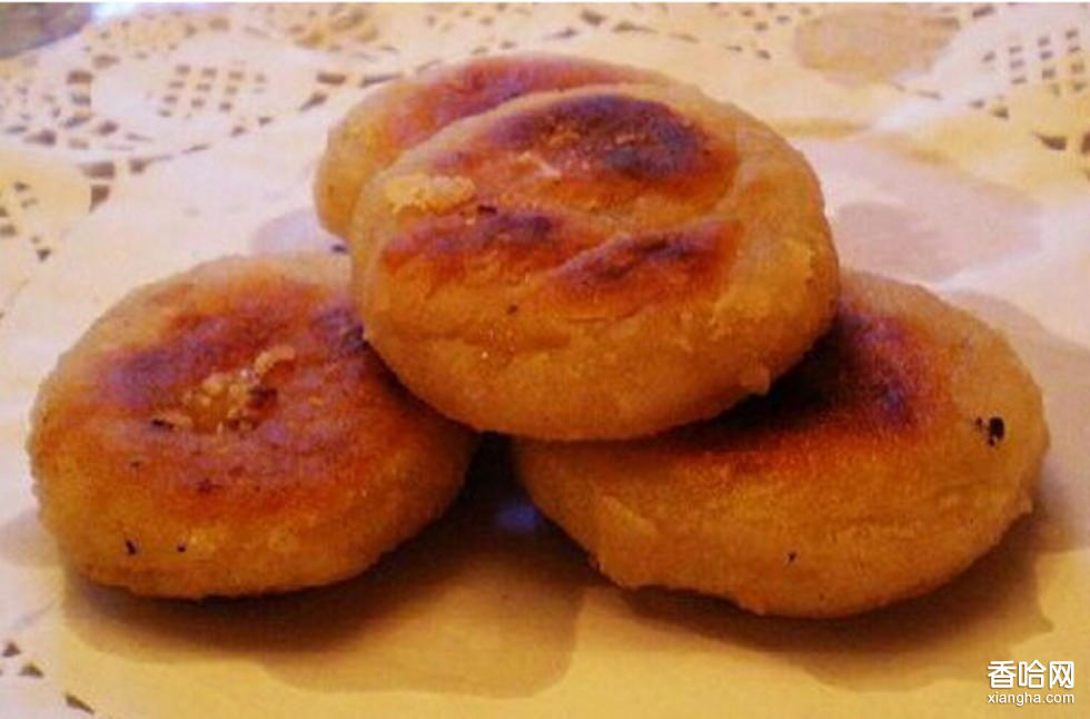 1.將面粉倒入面盆,先加入適量開水燙成雪花狀,再逐漸加入冷水揉至起勁而有拉力時,將面拉成長條,包入面酥再次揉均勻后,摘成若干個面劑放好。面酥是面粉中摻生油(或豬油)反復(fù)搓勻即成。2.將黑棗蒸爛,去皮核壓成泥,用豬油加白糖炒干稠,即成棗泥餡。3.將摘好的面劑一個個壓成皮子,用每個皮子包入適量棗泥餡,再搟成直徑3厘米左右的生圓餅。4.將平底鍋放火上,先抹上一層水,再放上生圓餅,反復(fù)轉(zhuǎn)翻,每翻一次,抹一次麻油,約15分鐘即成。