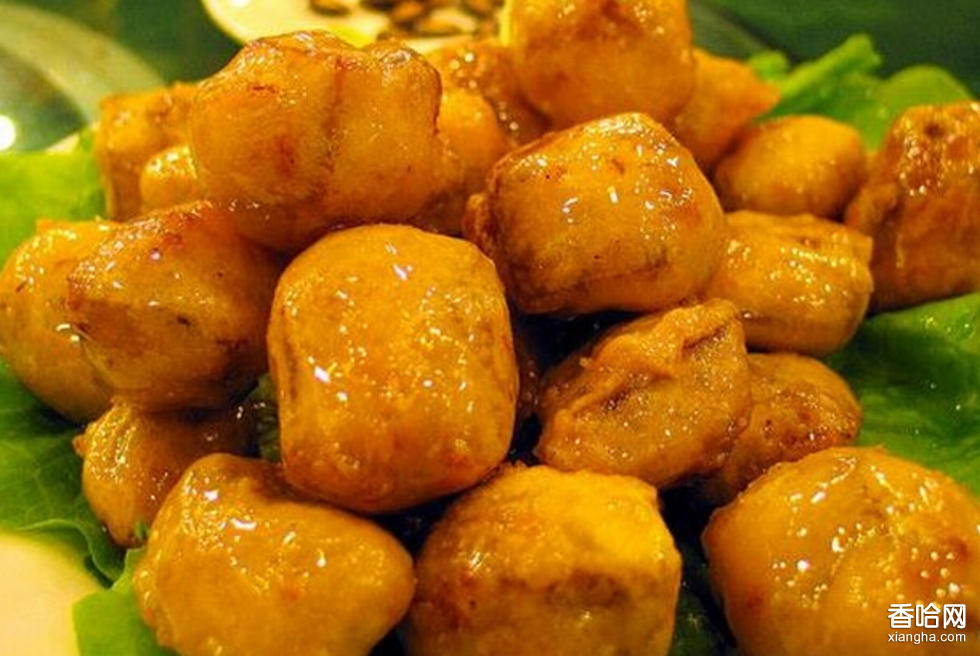 配料:芋頭500克,芝麻10克,白糖200克,熟豬油或清油750克(實耗100克)。