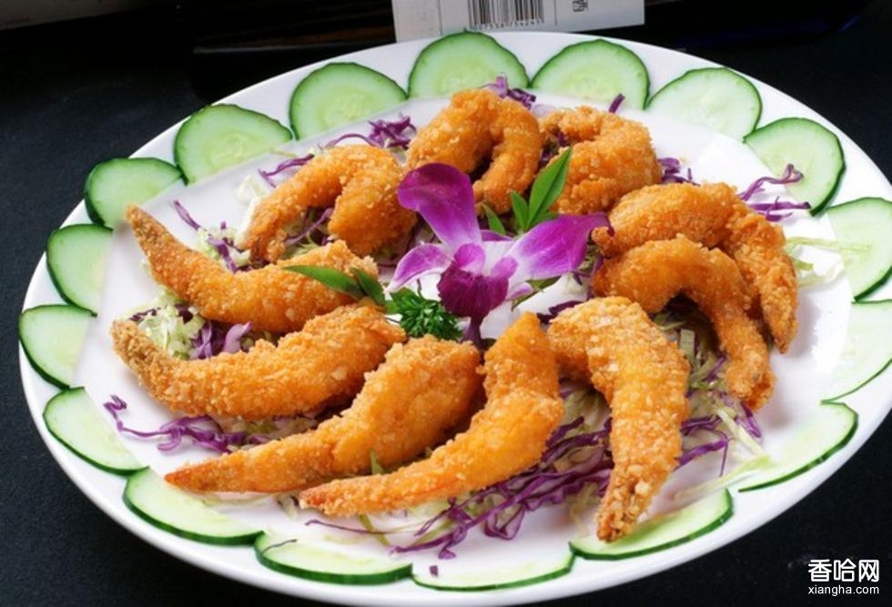 10. 鍋置旺火上放入熟豬油,燒到七成熱時(shí),將琵琶蝦放入,炸至外皮酥脆撈起裝盤即成。