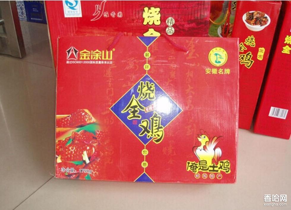 蚌埠“金涂山燒全雞“是發(fā)明專利產(chǎn)品,風(fēng)味獨(dú)特。原料精選皖北,豫東,魯南等地農(nóng)家散養(yǎng)的一年以上的健壯雄草雞,配一三十多種名貴香料,精鹽,植物油,調(diào)料等。經(jīng)二十一道工序,以文武火精久耗時(shí)燒制而成。