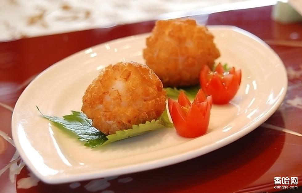 紹蝦球,是紹興市漢族傳統(tǒng)名菜,蛋糊經(jīng)油炸后形成細(xì)如蓑衣絲的蛋絲,包裹住蝦仁,色澤金黃油潤,質(zhì)地香松酥脆,用蔥白段、甜面醬一起蘸食,味道佳美,此菜已有100多年歷史。初名“蝦肉打蛋”,為紹興城內(nèi)雅堂酒店的看家菜肴之一,后經(jīng)廚師改進(jìn),更名為“紹蝦球”。