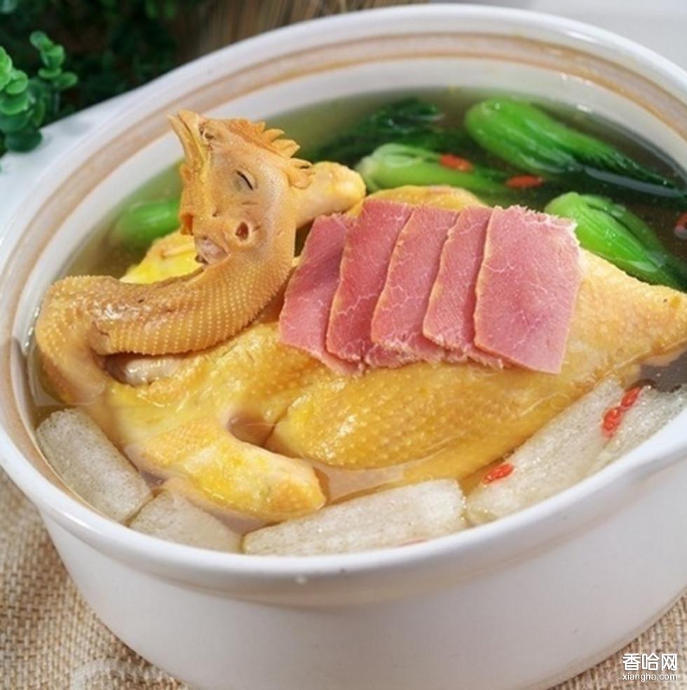 雞1000克,油菜心50克,火腿25克,冬筍25克,香菇10克,黃酒25克,鹽2克,味精3克。