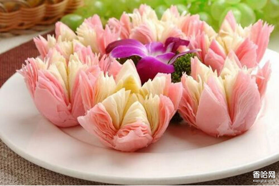 荷花酥是浙江杭州著名的漢族小吃。酥層清晰,食之酥松香甜,別有風(fēng)味?!俺鲇倌喽蝗尽笔侨藗儗苫ǜ哐艥嶜惼焚|(zhì)的贊譽(yù),用油酥面制成的荷花酥,形似荷花,酥層清晰,觀之形美動人,食之酥松香甜,別有風(fēng)味,是宴席上常用的一種花式中點,給人以美的享受。