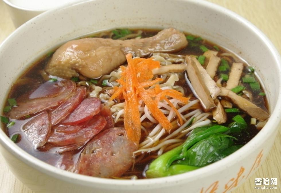 近年來,在鎮(zhèn)江的大街小巷流行著一種風(fēng)味小吃——鴨血粉絲湯,它口味鮮、香,價(jià)廉物美,廣受男女老幼的喜愛。鴨血粉絲湯制作十分簡單方便,只需將粉絲盛在小竹簍中,放入煮沸的鴨血湯中燙熟后,將粉絲和鴨血湯倒入碗中,再放入鴨腸、鴨肝、蔥花、香菜和調(diào)味料等即可。粉絲誘滑,鴨血鮮嫩,確為一道美味可口的小吃。