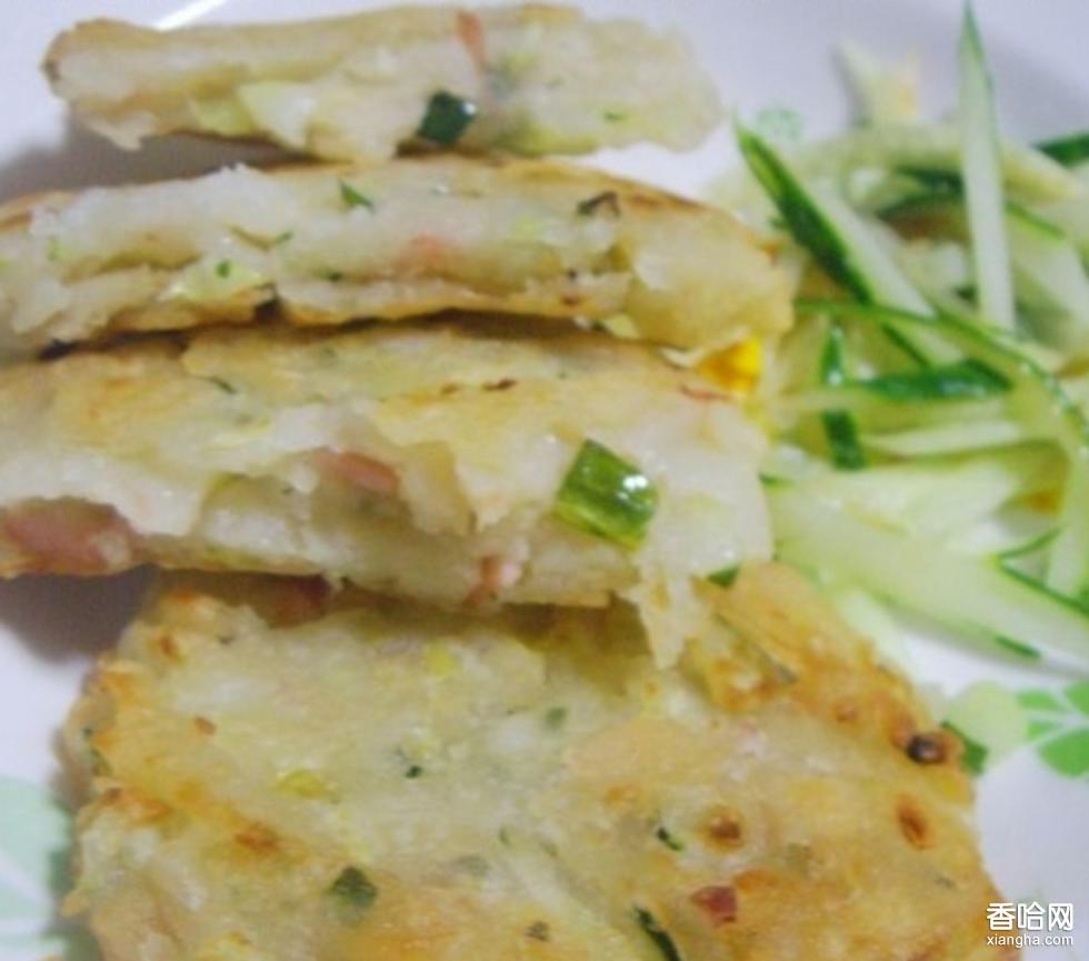 蝦米套餅,是浙江平湖市漢族傳統(tǒng)小吃精品。做法是將面粉和好,折成劑子,撳扁成中間厚邊緣薄的皮子,放豬板油丁、蝦米收口,先制成小圓餅,撣上飴糖,撒上芝麻;將發(fā)好的面團(tuán)折成劑子,搟成大圓餅,撣上飴糖,撒上芝麻。再將大小餅分別貼在已經(jīng)關(guān)上爐門的旺火爐壁上,貼完后將爐門打開,烘兩分鐘左右出爐。再用小刀從大圓餅邊緣平剖開,套入小餅即成。具有色澤金黃,香脆酥松,滋味鮮美的特點(diǎn)。