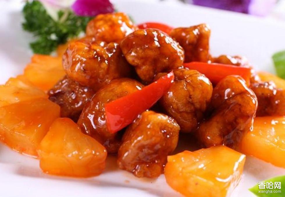 菠蘿蝦球,是開化的一道特色菜,菠蘿蝦球的做法與粵菜中的咕嚕肉非常近似,所不同的只要在于對番茄糖醋汁的把握上。