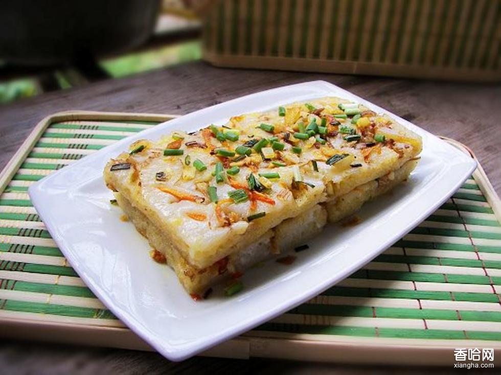 它采用粗糙的早稻米為原料,將米浸泡一晚后磨成粉,加入水就變成了米漿,這漿不能太稀也不能太濃,而要根據(jù)天氣變化不斷調(diào)整,否則做出的汽糕不是太軟就是太硬,咬起來總?cè)鄙購椥?。制作汽糕的工具也別具一格,小小的煤爐上端置一口不大的鐵鍋,放入一帶孔的鋁板,再鋪一層紗布,舀上兩三勺發(fā)酵后的米漿,攤平。再依個人口味,撒上蝦仁、豬肉、豆腐干絲等餡料,不停地加熱,蒸汽從圓孔中徐徐向上,十分鐘后一個厚約1.5厘米,香糯適中,潔白晶瑩,松軟有彈性的汽糕便做成了。將其切成小塊,放入油中微炸,香味一出直讓人流口水。