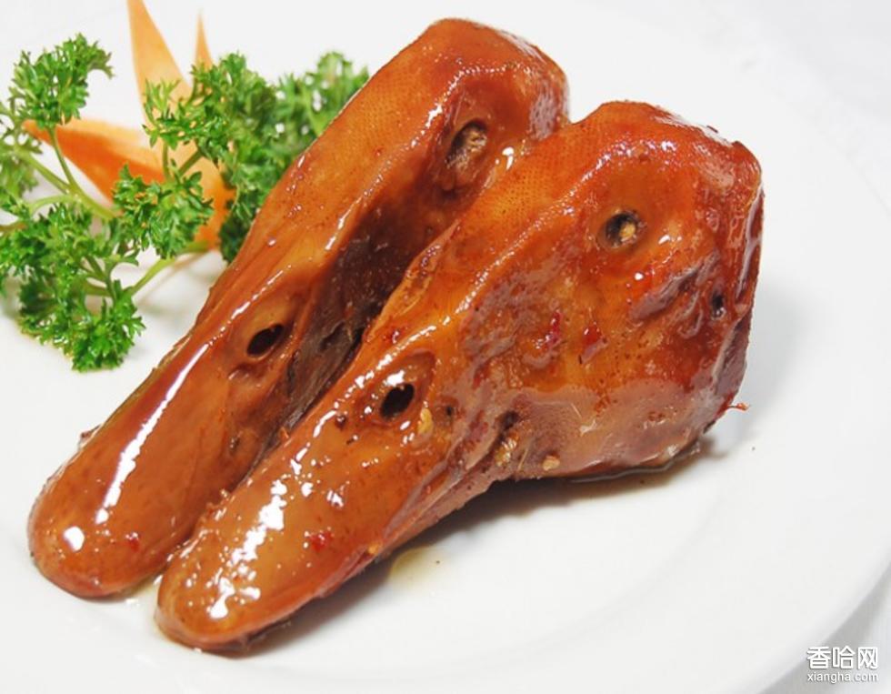 君子好財(cái)取之有道,祖孫三人打聽了半年也沒找到這個好心人,于是在城南門旁開了家鹵味店。店里的產(chǎn)品香味吸引了來來往往的路客,一傳十,十傳百,一到中午邊便賣個凈空。后來,店里來了個貴人,聽說從廬山和黃山游玩回來本打算直接到江郎山的,遠(yuǎn)遠(yuǎn)聞到這個熟悉的香味就一直追隨了過來,酒足飯飽后在餐桌上留下了“頭頭是道”四個字。孫子孫女感到非常好奇,莫非同一個人?等到醒悟時,人卻不知去向了。人們后來才知道這個貴人就是明代著名的旅游家和文學(xué)家徐霞客先生。到了上個世紀(jì)50年代,衢州街坊鄰里沿用祖輩的鹵制方法,用衢桔皮,大南門的大蒜等香料鹵兔頭吃。到了80年代后,鹵兔頭走向了酒店,之后吃鴨頭、魚頭和鴨掌也開始流行起來,“三頭一掌”也成了衢州人約定俗成的叫法。