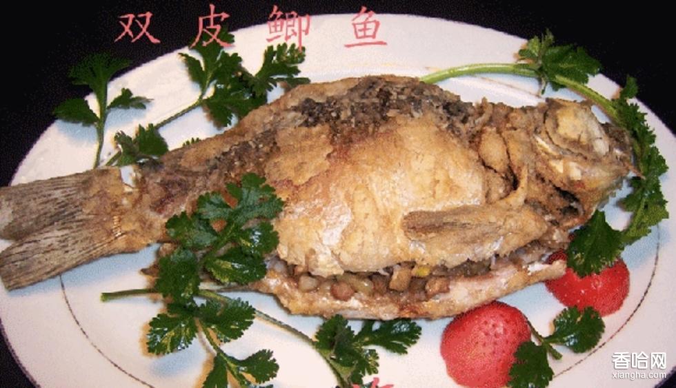 雙皮鯽魚是一道漢族名菜,主要是將鯽魚炸制,色澤金黃,外酥里嫩,餡心豐滿,鮮香味美。