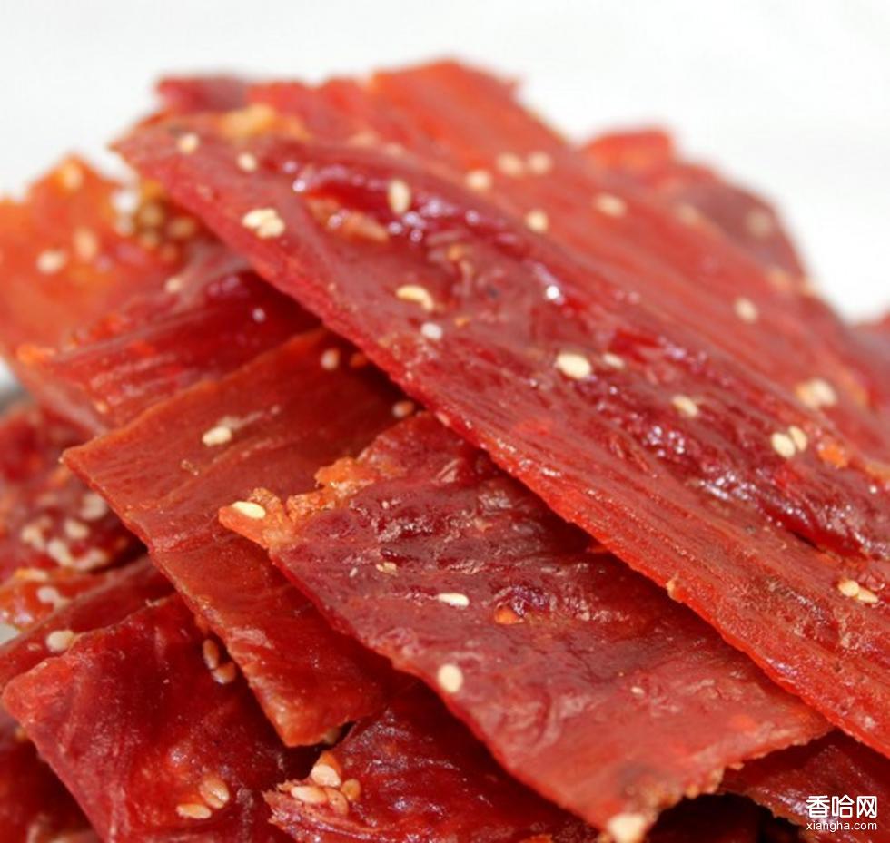 肉脯色澤赤紅,薄而透明,片型整齊,甜中帶咸,咸中帶鮮,它可作為宴席上的冷盤,或用以炒雞蛋、烘豆腐,烹時(shí)略加蔥花、麻油滋味甚美。