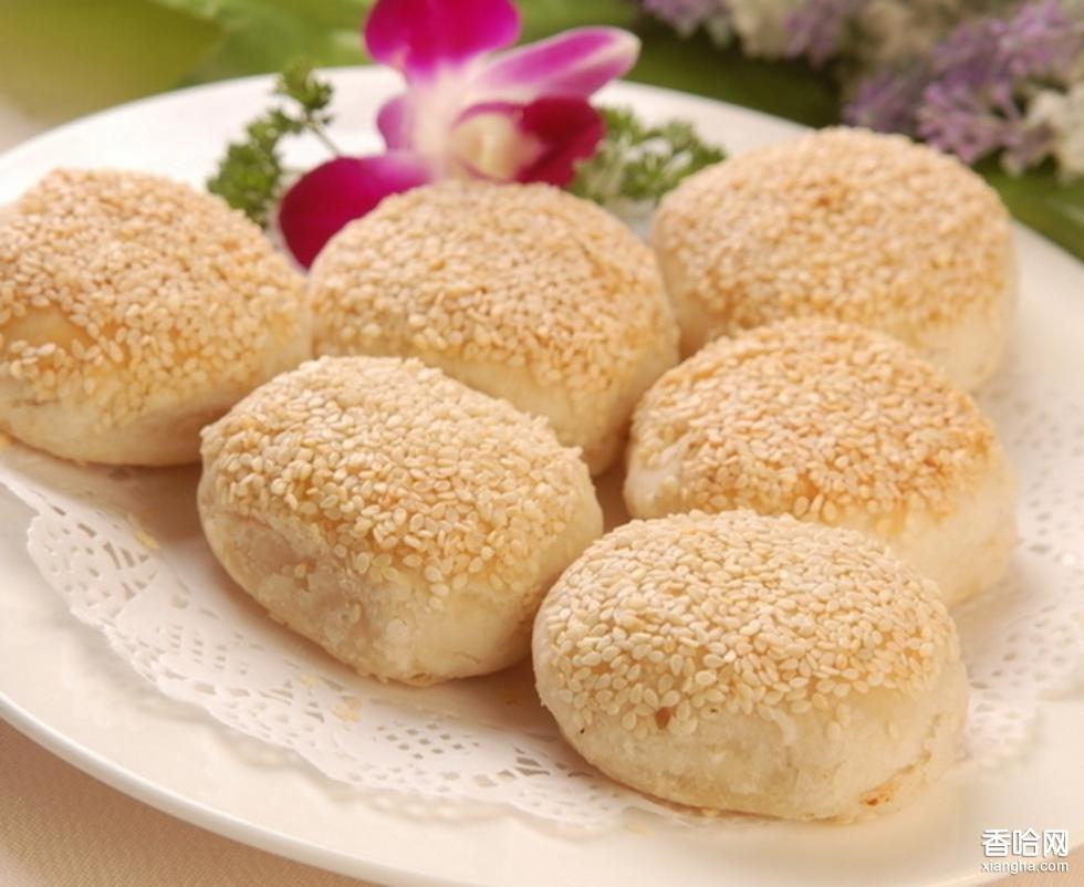 面粉用酒酵發(fā)酵,然后在草爐上加少許油,用小火烘烤成兩面焦黃即成,形狀如一個(gè)倒扣著的小臉盆。黃橋燒餅只有巴掌大小,厚薄只有半寸,最外邊是一層厚厚的焦黃的芝麻,圓圓的,金黃燦燦的,看上去象一個(gè)玲瓏剔透精致的小工藝品,當(dāng)然,里面的內(nèi)容那就更是65年前的浴血將士們想也不敢想的了。65年前的黃橋燒餅里面可是什么餡兒也沒有,簡(jiǎn)單的在面里面和上一點(diǎn)糖就已經(jīng)算是燒餅中的極品了,黃橋燒餅的主餡是肉松、火腿、蝦米、蔥油、雞丁、香腸等外加豬油,香蔥和面調(diào)和的餡,在溫控的電烤爐的烘烤下,燒餅外黃里軟,色呈蟹殼紅,不焦不糊,不油不膩,咬一口,香氣四溢,蔥油流滿嘴角。