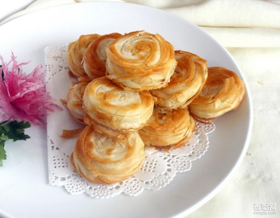 這個(gè)制作過程說來簡(jiǎn)單,操作起來就困難了,特別是要把酥餅煎得金黃透酥,外殼上的圈紋層層翹起,那是需要較高技藝的,所以外地一般很難仿效。