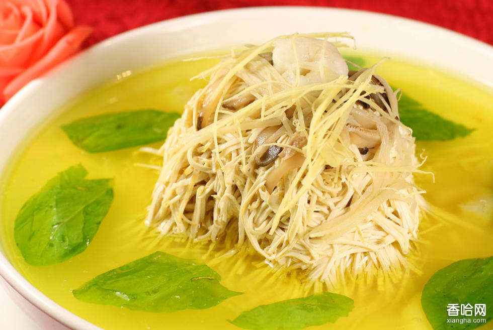 大煮干絲又稱雞汁煮干絲,漢族傳統(tǒng)名菜,屬淮揚菜系(淮安、揚州、鎮(zhèn)江)。是一道既清爽,又有營養(yǎng)的佳肴,其風味之美,歷來被推為席上美饌,淮揚菜系中的看家菜。原料主要為淮揚方干,刀工要求極為精細,多種佐料的鮮香味經(jīng)過烹調(diào),復合到豆腐干絲里,吃起來爽口開胃,異常珍美,百食不厭。南京干絲是一套不同于其他城市獨特的制做方法。那些嫩而不老,干而不碎的干絲,均為豆腐店的特制而成。將豆腐切切細絲,配合各種湯料煮好,拌上香麻油和上乘醬油,入口清爽而回味悠長。