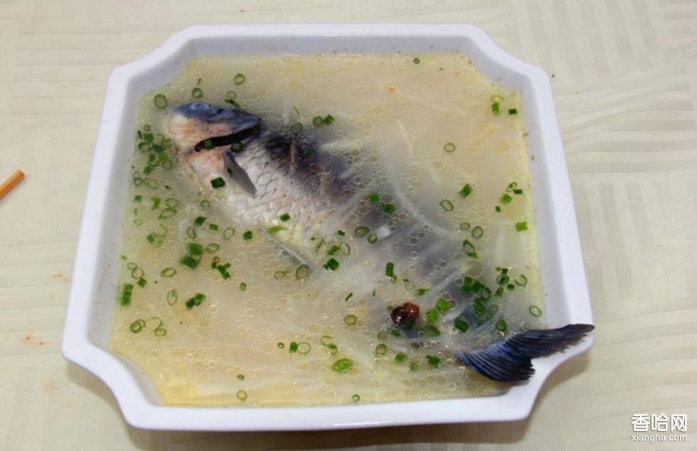 黑河盛產(chǎn)各種淡水魚,鯽魚便是其中之一,鯽魚湯的做法相當(dāng)?shù)睾唵危咨洗蟀脲佀?,把鯽魚洗干凈之后放到鍋里,然后將魚燉開。燉湯的鍋十分有講究,必須是鐵鍋,而且燉起來要連湯帶水,這樣才能好吃。鯽魚最好選用河鯽,野生的河鯽味道特別鮮,配上一碗米飯,絕對(duì)是美味。