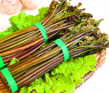 蕨菜含有維生素C、鉀、鈣、磷、鐵、錳、銅、鋅。 蕨菜對(duì)細(xì)菌有一定的抑制作用,能清熱解毒。吃蕨菜炒肉能促進(jìn)胃腸蠕動(dòng),具有下氣通便的作用,能清腸排毒。蕨菜是減肥人士的大愛(ài),它具有減肥去脂、健身美容、延緩衰老、消暑、去熱、增加食欲等功效。