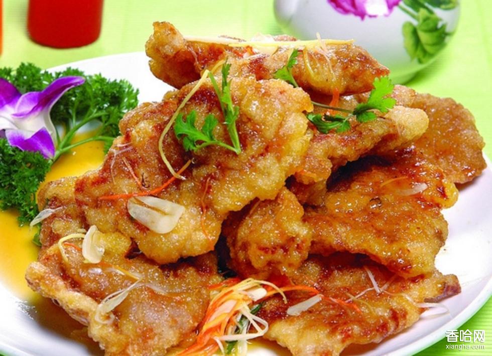 制法:1.豬里脊肉改刀成7厘米長、5厘米寬、0.2厘米厚的大片,用精鹽、料酒拌勻碼味;用水淀粉及少許色拉油調(diào)成稠糊;另用番茄醬,醬油、白糖、醋、味精、鮮湯、水淀粉等對成滋汁。2.炒鍋置火上,放入色拉油燒至六七成熱,先將碼好味的肉片與稠糊拌勻,再一片片展開,逐一下入鍋中,炸至外酥內(nèi)嫩時撈出瀝油。3.鍋留底油,投入姜絲、蔥絲炸香,下入炸好的肉片,烹入滋汁,翻拌均勻后起鍋裝盤,撒上香菜即成。