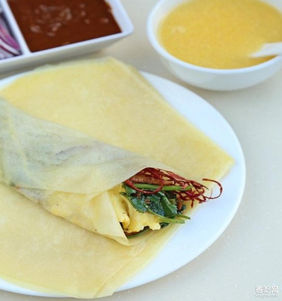 榆林筋餅,是以白面(小麥粉)為主要原料,用平底鐵鍋烙制而成的民間傳統(tǒng)風味食品。其輕如紙張,薄如蟬翼,放在書刊上可清晰地看見下面的文字。此餅雖薄,但卻筋道、抗咬,結實而富有彈性。吃的時候卷上豆芽、土豆絲、蔥絲、黃瓜絲 等卷餅菜,筋餅不僅不會破漏,而且風味更 加獨特,菜的味道也會變得更加清香爽口。