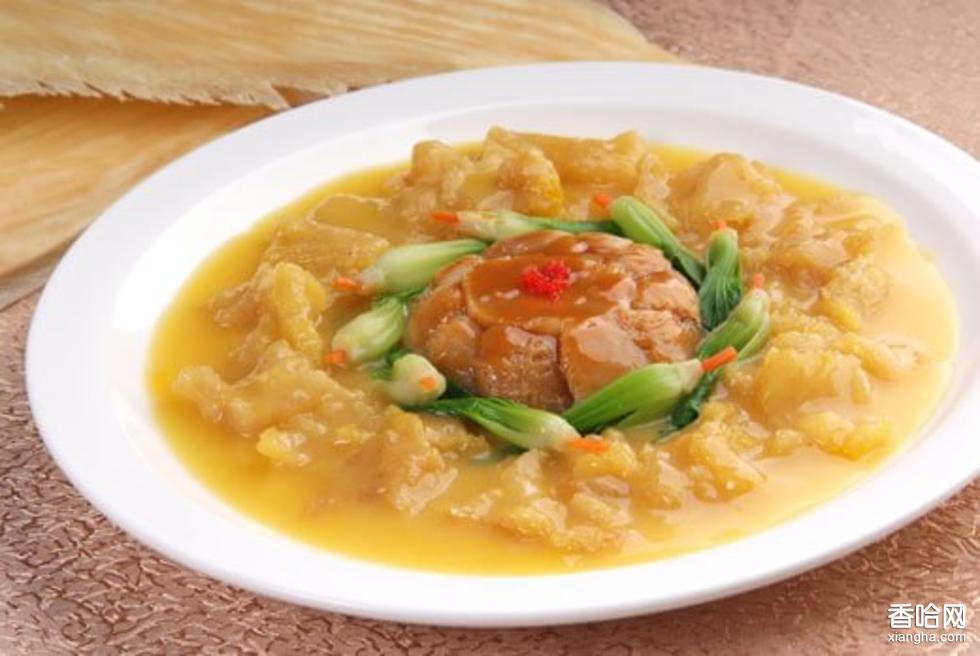 蟹黃魚肚,是一道江蘇名菜,蟹黃味鮮,色黃亮,魚肚軟滑,湯汁濃郁。魚肚是名貴干貨原料之一。中國吃魚肚,史書多有記載,如《齊民要術》上的作法,宋人陳世崇的《隨隱漫錄),明《本草綱目》等多有記載。中醫(yī)認為魚肚甘咸性滑,人肝、腎二經(jīng),具有清頭目、養(yǎng)精固氣等功效。