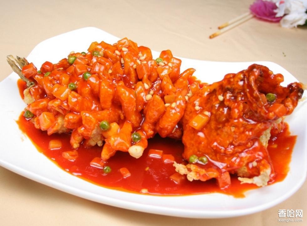 制作步驟:1.將桂魚去鱗、鰓、鰭、內臟,去掉頭上的皮衣,洗凈,把魚頭斬下,攤開、拍扁。用刀把魚背部的魚骨切掉(不要把魚腹切破),在尾巴處留約1雨的脊骨。桂魚去骨后,皮朝下攤開,用斜刀切成花刀,刀深達肉的4/5,不要切破魚皮,在尾巴處開一個口,將尾巴從刀口中拉出。2.將魚身撒上食鹽、胡椒粉、料酒、濕淀粉(少許)涂勻3.炒鍋上火,燒熱后倒入植物油,油熱至七成,將桂魚蘸少許淀粉,放油鍋中炸數(shù)分鐘,再將魚頭蘸上淀粉,放入油鍋中炸,炸至呈金黃色撈出,將有花刀的一面朝上擺在魚盤中,裝上魚頭。4.將松子放在油鍋中,待熟后撈出,放小碗中。 5. 炒鍋中留少許油,放入少許清湯,加食鹽、糖、番茄醬、食醋,燒沸后,用濕淀粉勾芡,加入熱油少許推勻,出鍋澆在魚肉上,撒上松子即可。