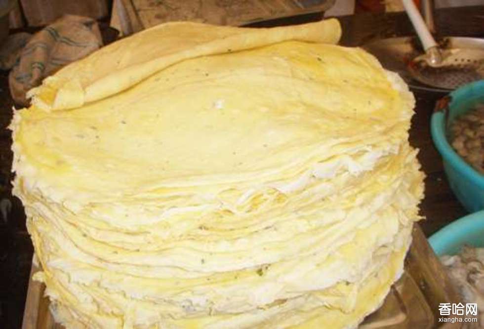 17.把雞蛋倒入另一只碗中,加精鹽1.5克調勻成蛋液,攤成直徑約10厘米左右的蛋皮,攤成16張;
