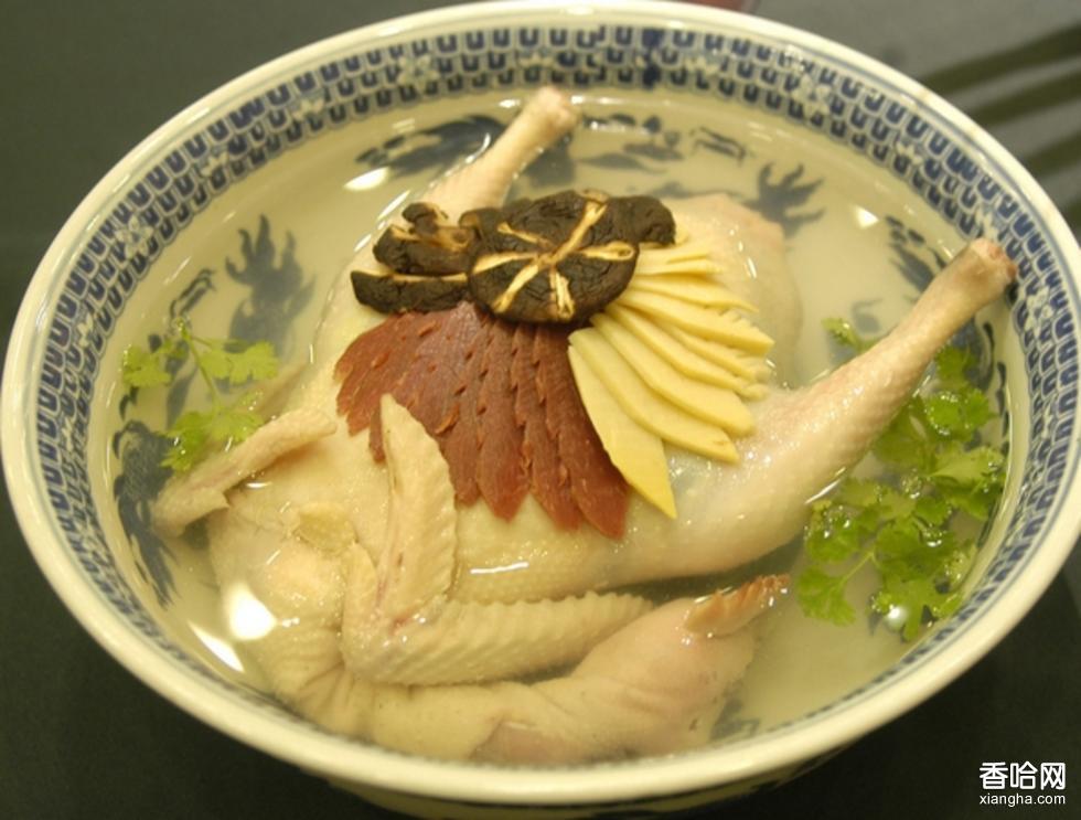 清燉狼山雞又稱原燜狼山雞,屬于江蘇菜 ,湯汁清澈見(jiàn)底,皮白有光,鮮味濃郁,微兼臘香,湯菜兼優(yōu)。