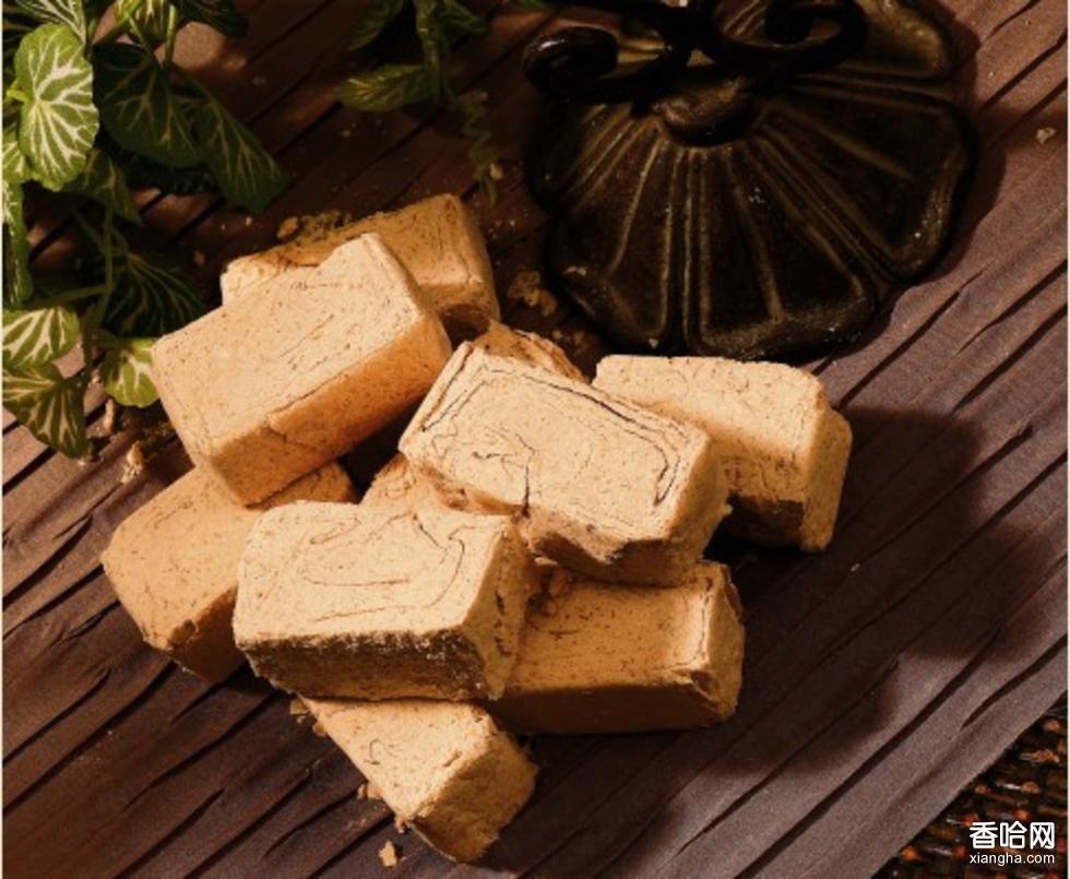 嵌桃麻糕,是江蘇省南通地區(qū)的漢族名小吃,主要由芝麻粉、白糖、炒米粉及核桃仁等原料制成。色澤金黃,味道香、甜、松、酥,有芝麻的清香。