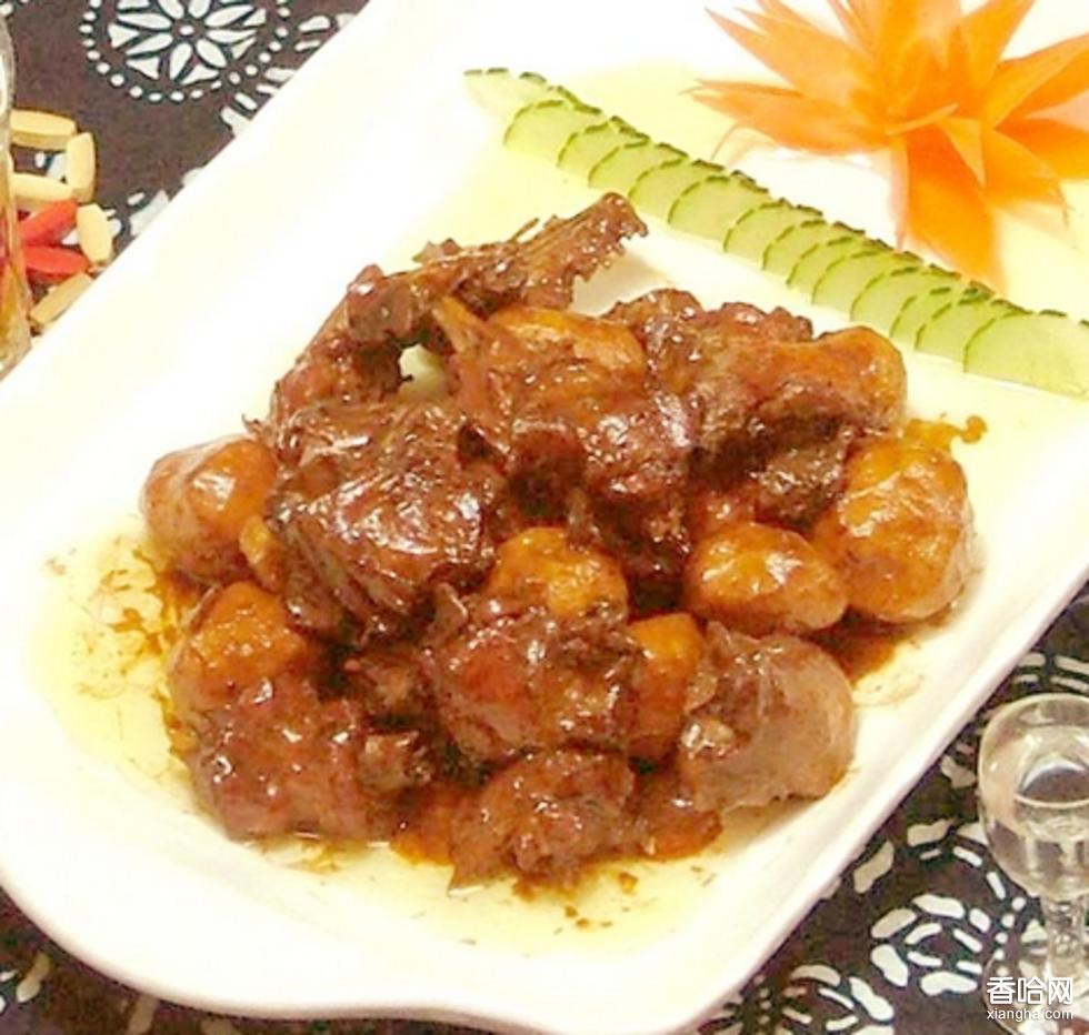 香芋燒竹雞,屬于蘇菜。色澤金黃,竹雞鮮美,香芋栗香,入口酥松。南通人將竹雞與香芋同燒,為稀有名貴野味,入口酥松,色香俱佳。